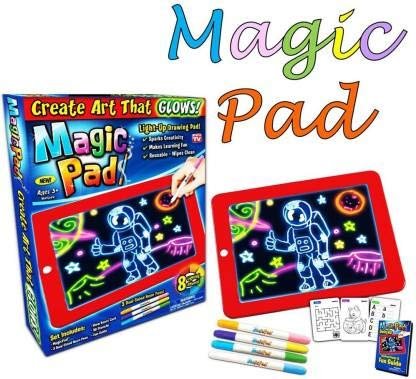 AGIC DRAWING PAD: Bring your art to life with Magic Pad! Magic Pad is a light up drawing pad that illuminates your art with a simple press of a button. Simply wipe the screen clean to create all over again.
